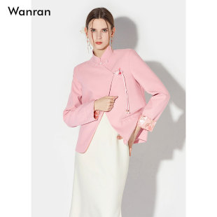 立领设计盘扣立体花装 2026春季 经典 国风新中式 饰拼接宽松外套 新款