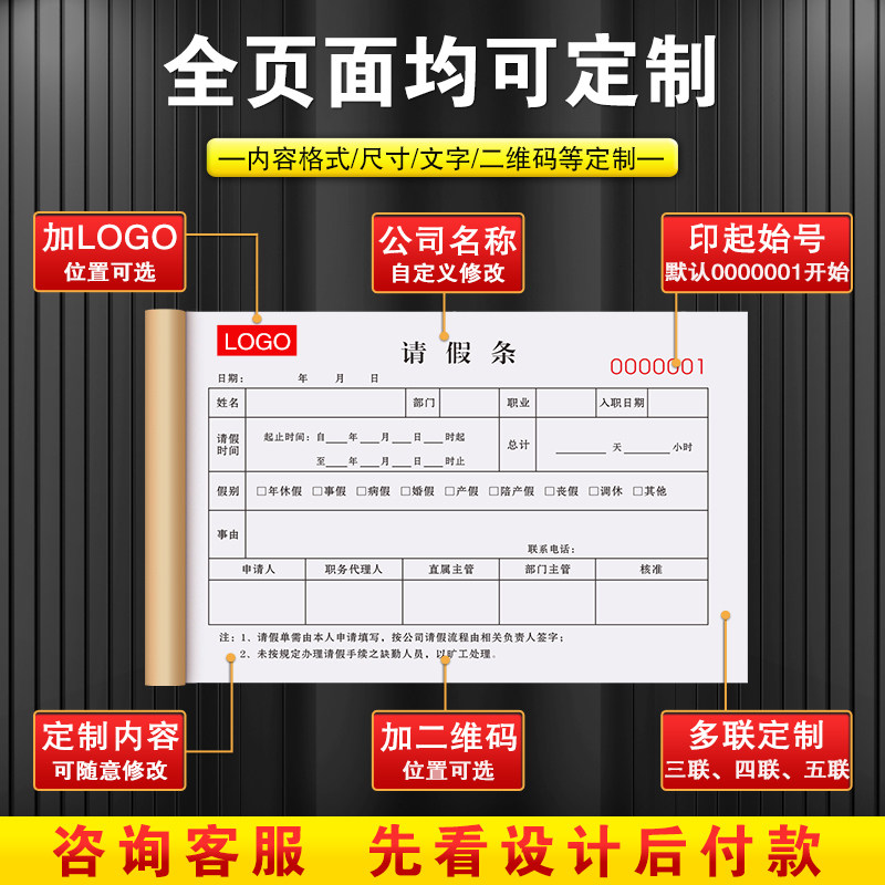请销假记录本公司外出假条本休息调休假单准假出差假条出门事假条