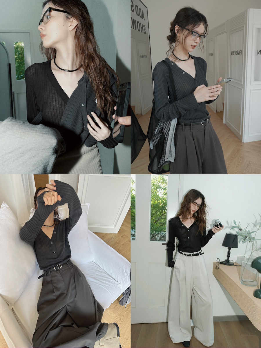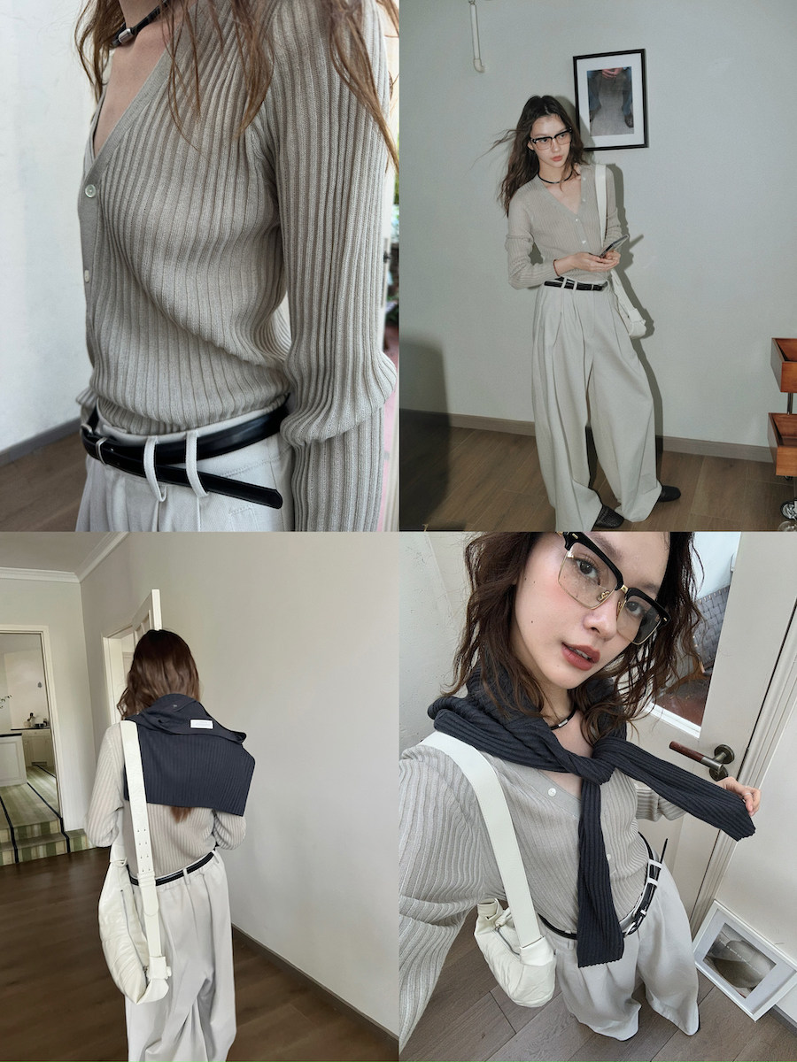 女早秋开衫 Moershop 针织衫 高级感坑条V领长袖 毛衣打底 高智Girl