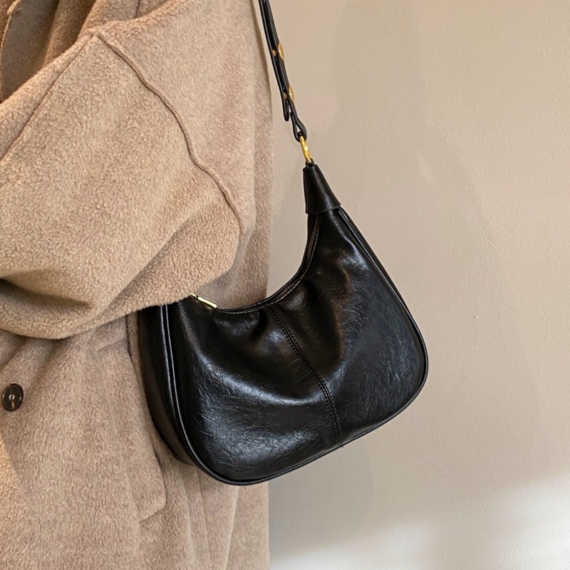 高级感包包女士2025新款 通勤单肩腋下包复古百搭斜挎饺子包 潮时尚
