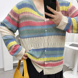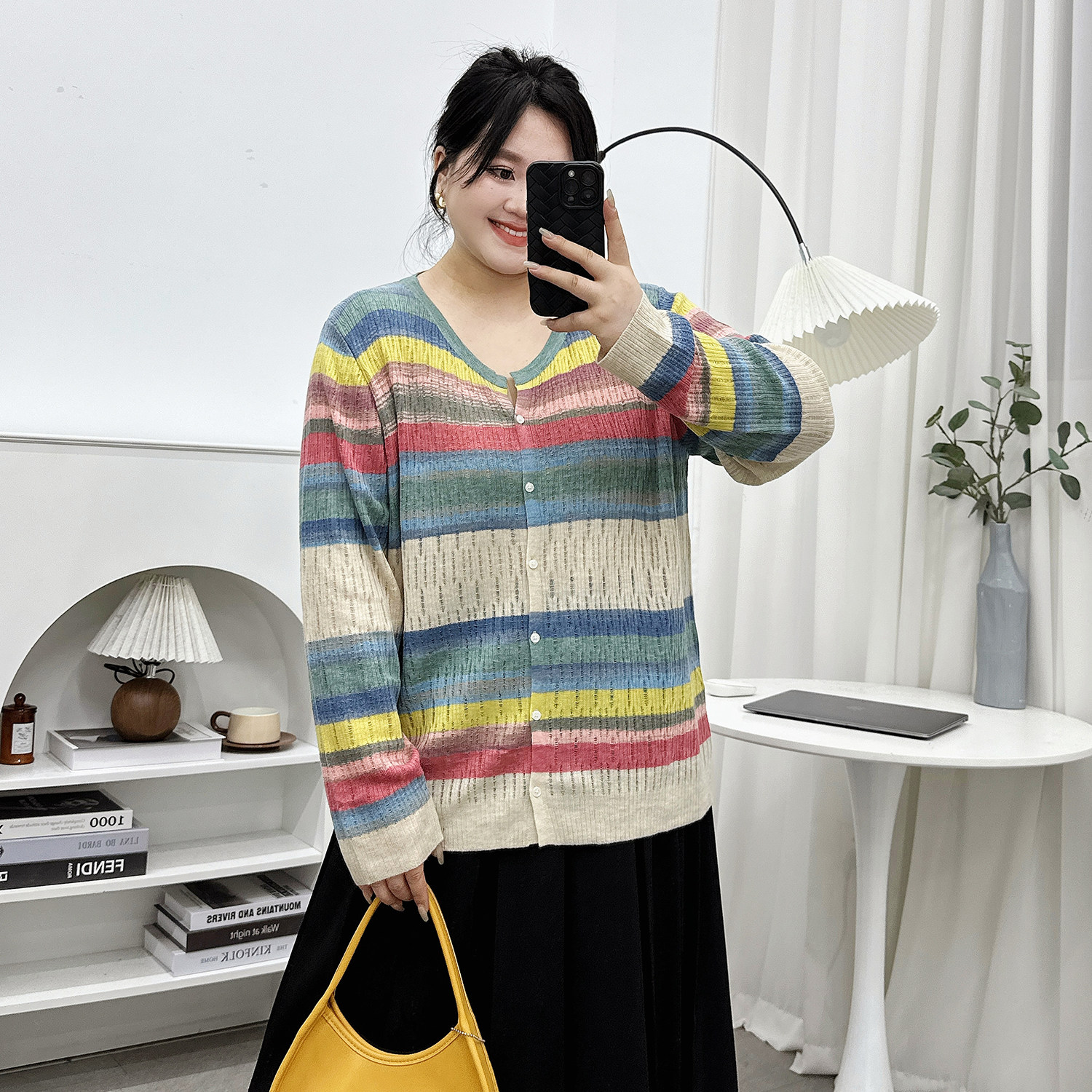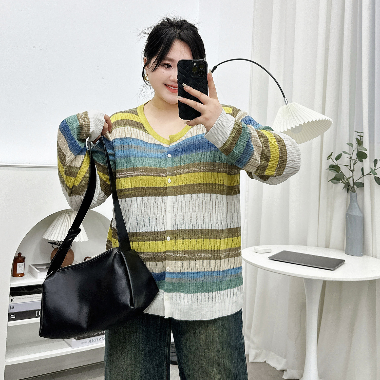 上衣女外套宽松针织开衫 宛宛大码 长袖 胖mm圆领彩色休闲韩版 早秋款