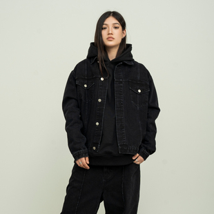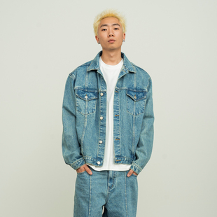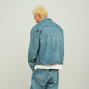 Makemore牛仔外套男水洗刺绣美式 街头复古重磅做旧宽松休闲外套女