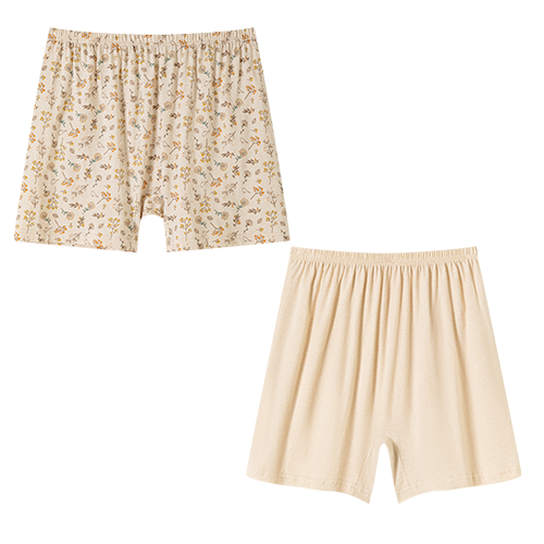 纯棉5A抗菌透气平角宽松睡裤 2条 女二合一安全裤 大码 三枪内裤