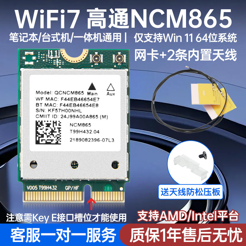 wifi7无线网卡高通NCM865 电脑M.2蓝牙WiFi接收器支持AMD MT7925电竞游戏5g笔记本台式