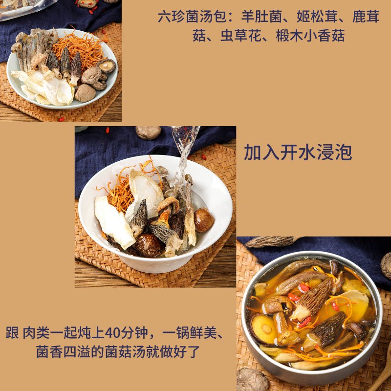 山野农夫六珍菌汤包干货品质菌菇福建特产菌菇煲汤鲜美炖汤营养菇