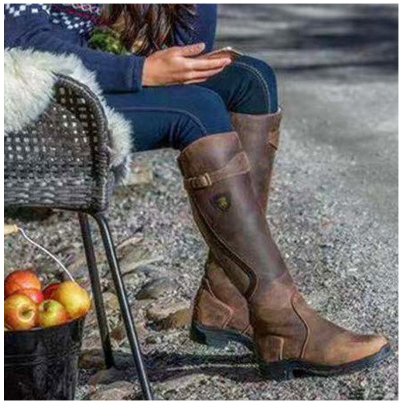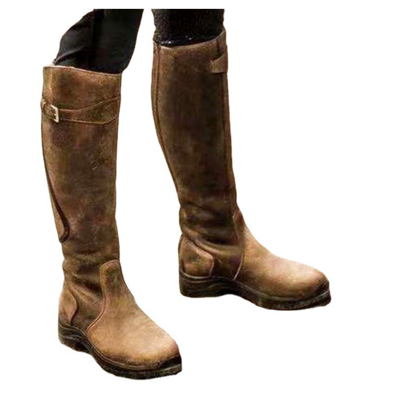 不过膝长筒靴女小个子女鞋 复古黑色马丁厚底高筒骑士靴子显瘦长靴
