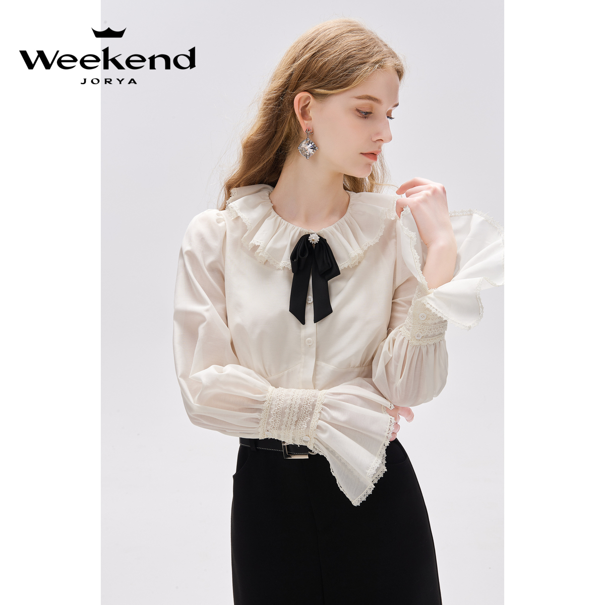 EJWDCF36 复古宫廷风拉夫领蝴蝶结荷叶边衬衫 卓雅周末2024春季 新款