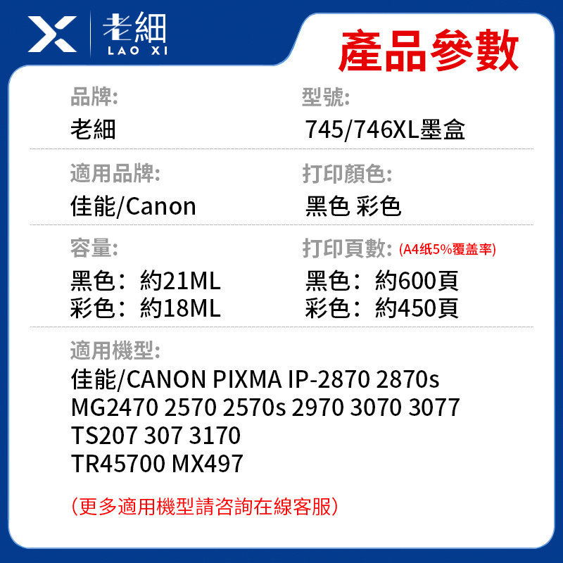 MG2970 TR4670 3077黑彩色港版 MG3070 MX497 TS3470打印机MG2570 TS3370 TS3170 746墨盒TR4570 兼容佳能745