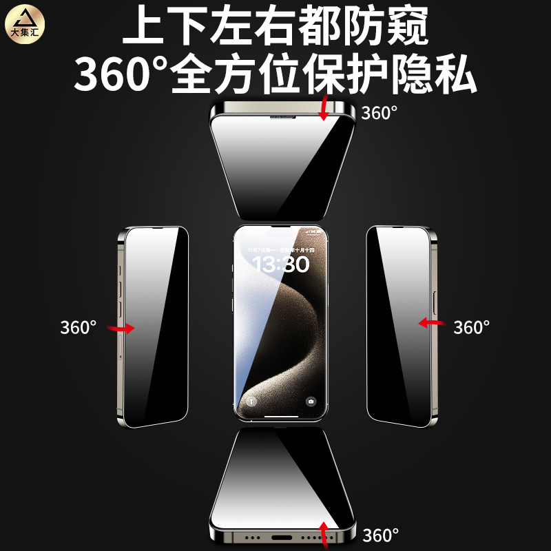 大集汇适用苹果15钢化膜14promax防窥膜360度iPhone16手机膜13防窥11PLUS全屏XR屏幕12pro防摔XSMAX新款 17AIR