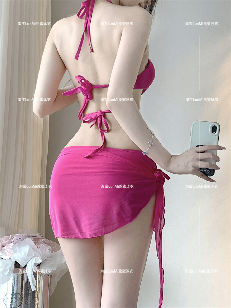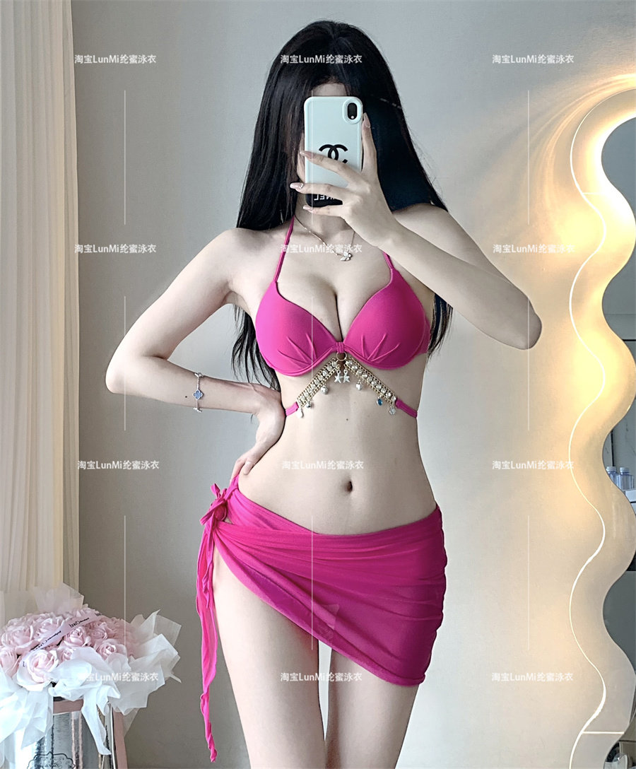 LunMi辣妹显胸钻链新款 聚拢钢托比基尼小胸聚拢沙滩度假温泉泳衣