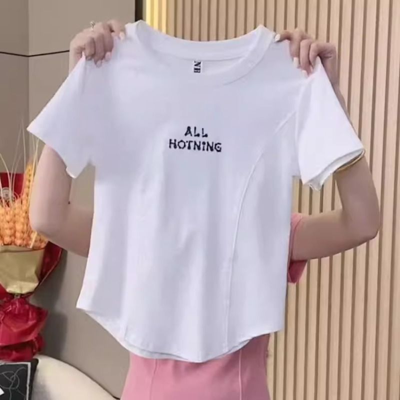 大码 纯棉今年新款 显瘦短款 T恤女夏修身 圆领弹力百搭上衣G 鱼骨短袖