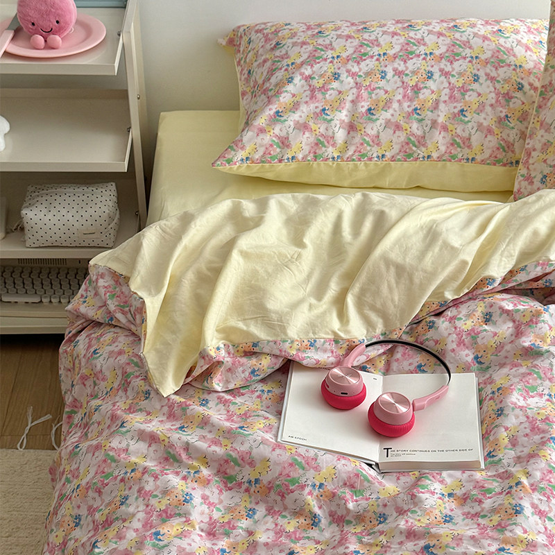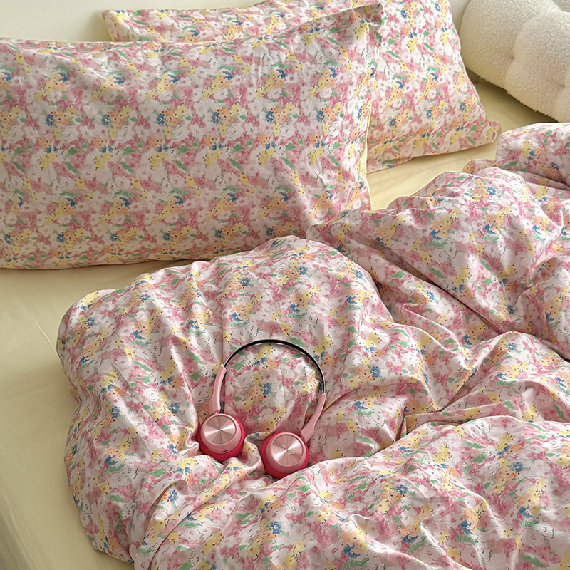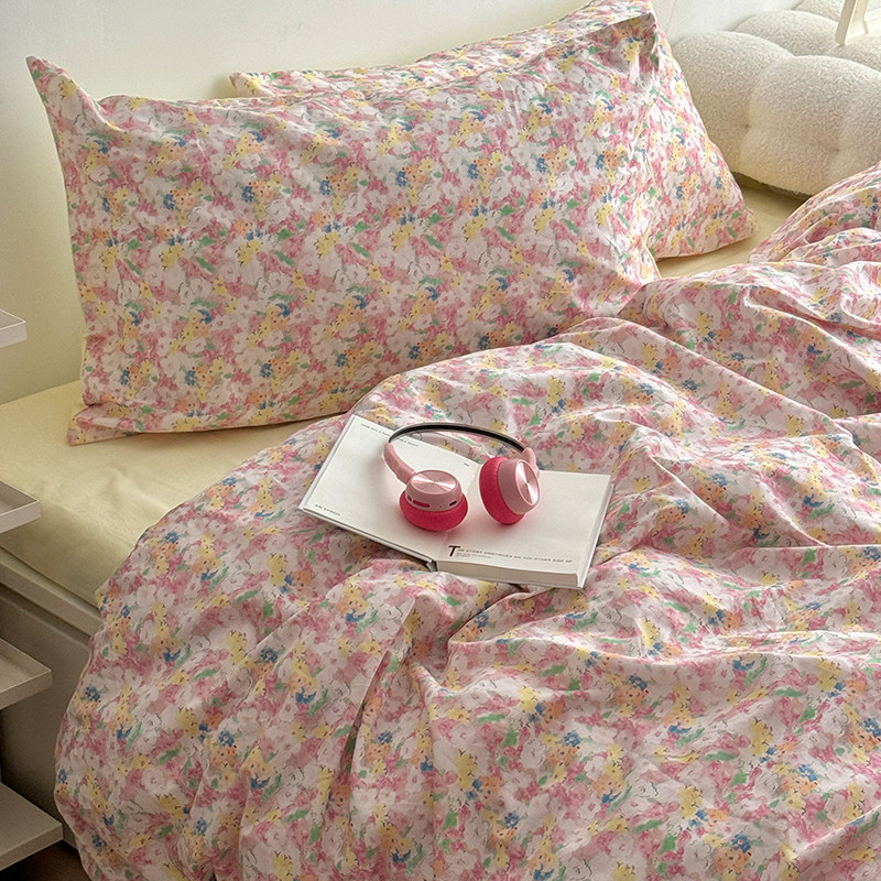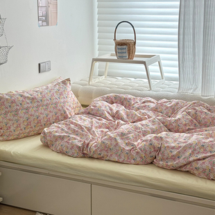 月光集 ins风韩系全棉斜纹棉四件套粉色奶油碎花纯棉床品 花信