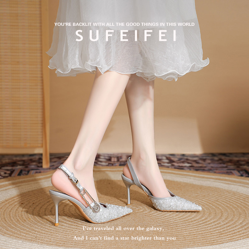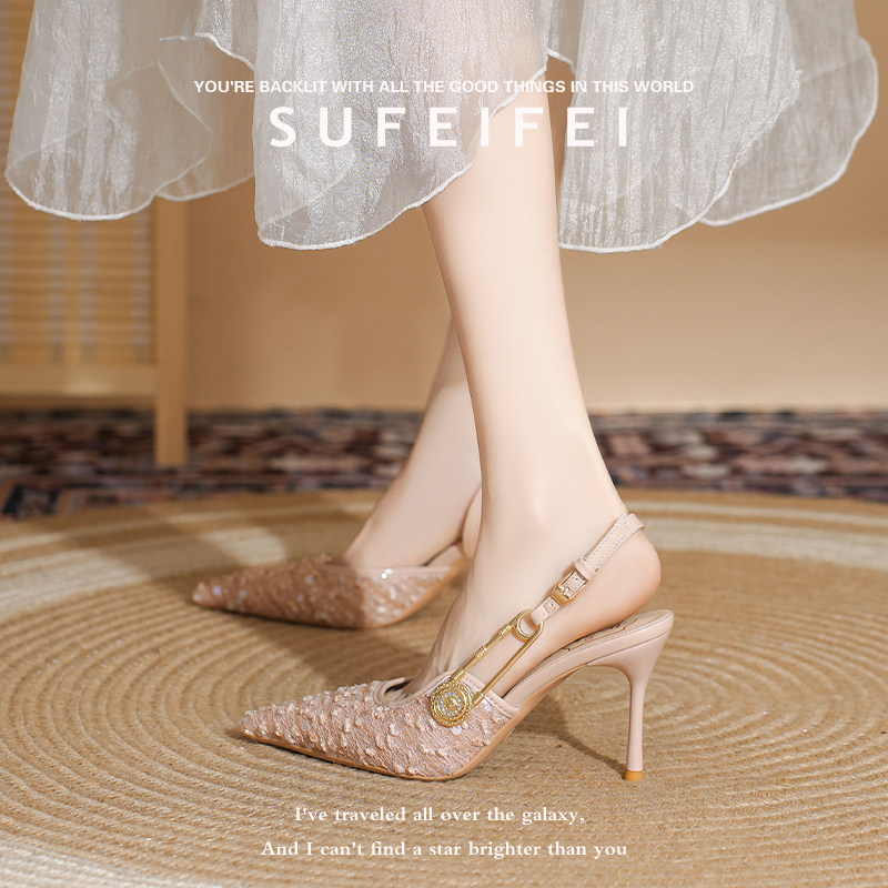 新款 包头高跟凉鞋 法式 女细跟尖头百搭时尚 女 绝美高跟鞋 苏妃妃春季