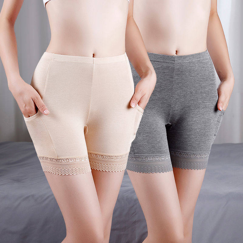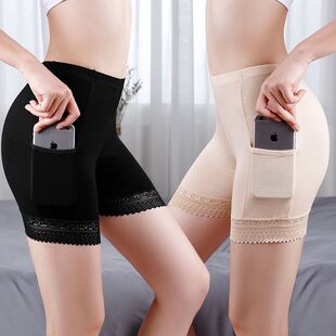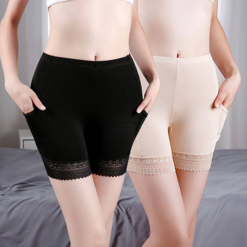 新款 女三分打底裤 花边安全裤 保险裤 女薄 防走光口袋女夏大码 二件装
