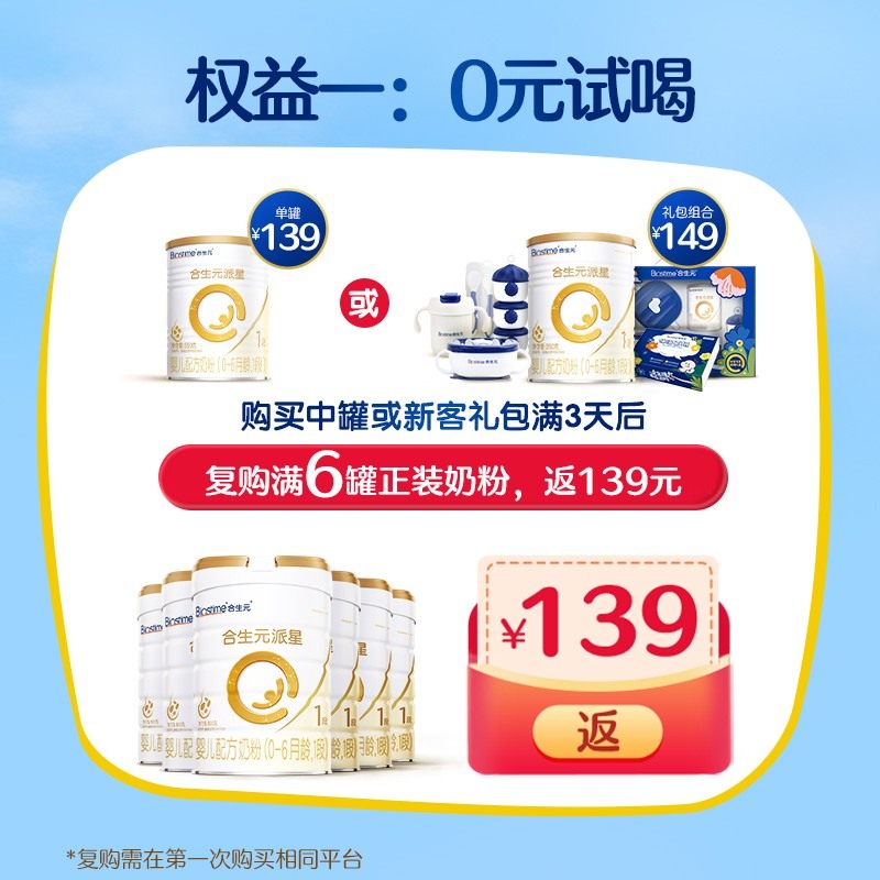 官方正品 合生元 试喝 派星1段新生婴儿奶粉350g礼包 0元
