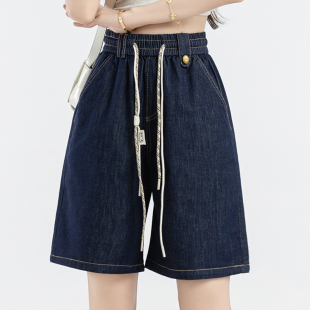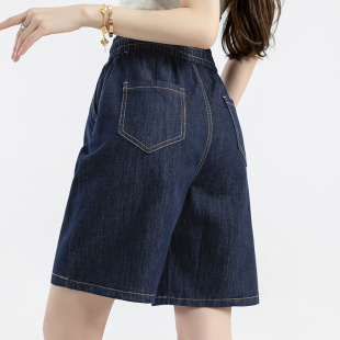 直筒休闲运动阔腿裤 五分牛仔短裤 松紧腰宽松大码 薄款 女2026年夏季