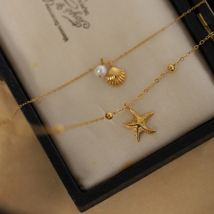 波西米亚沙滩海星贝壳项链配饰女生2025新款 饰腰带 夸张金属腰链装