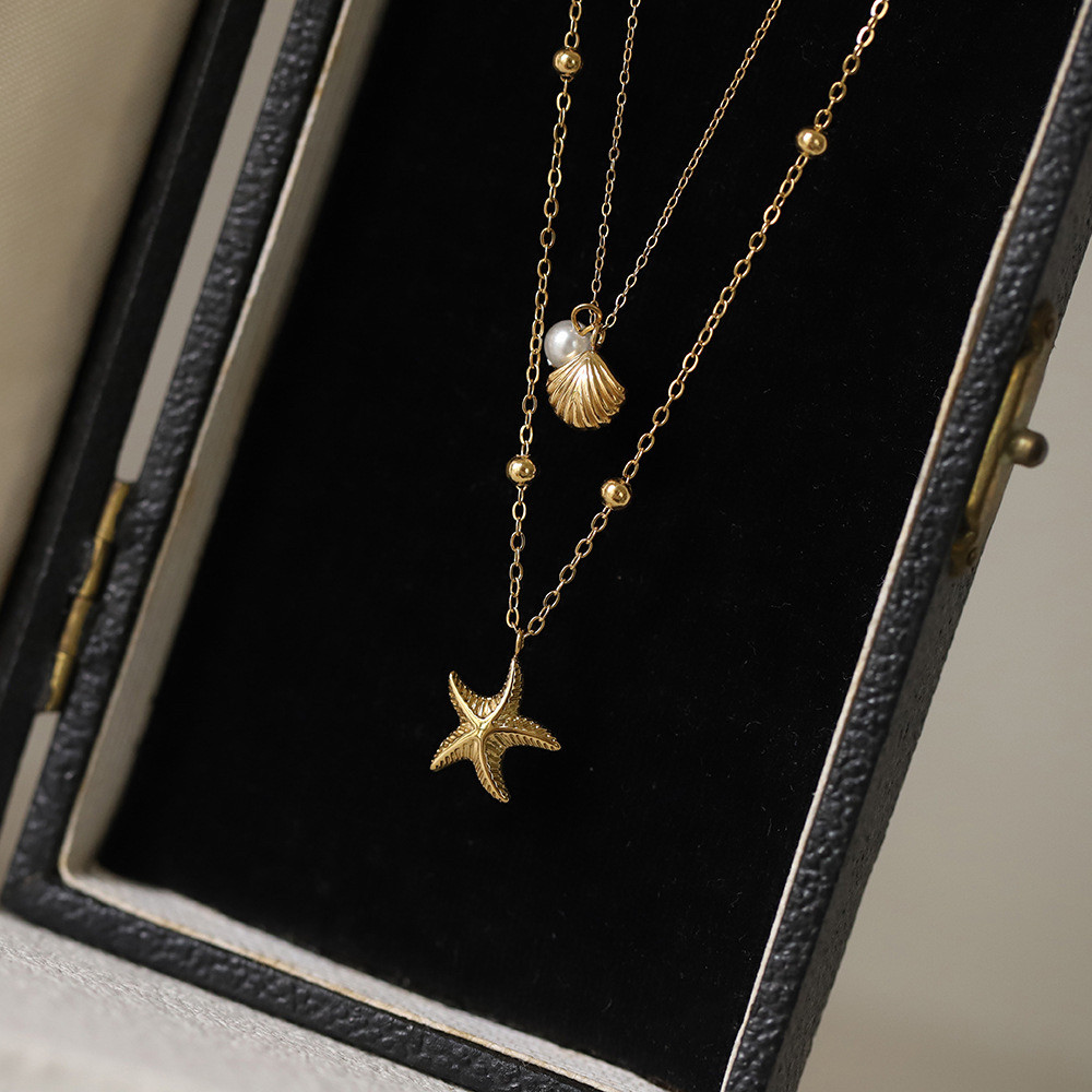 绝美满天星高级感叠戴颈链配饰 多层珍珠配裙子项链长款 蜜桃茶