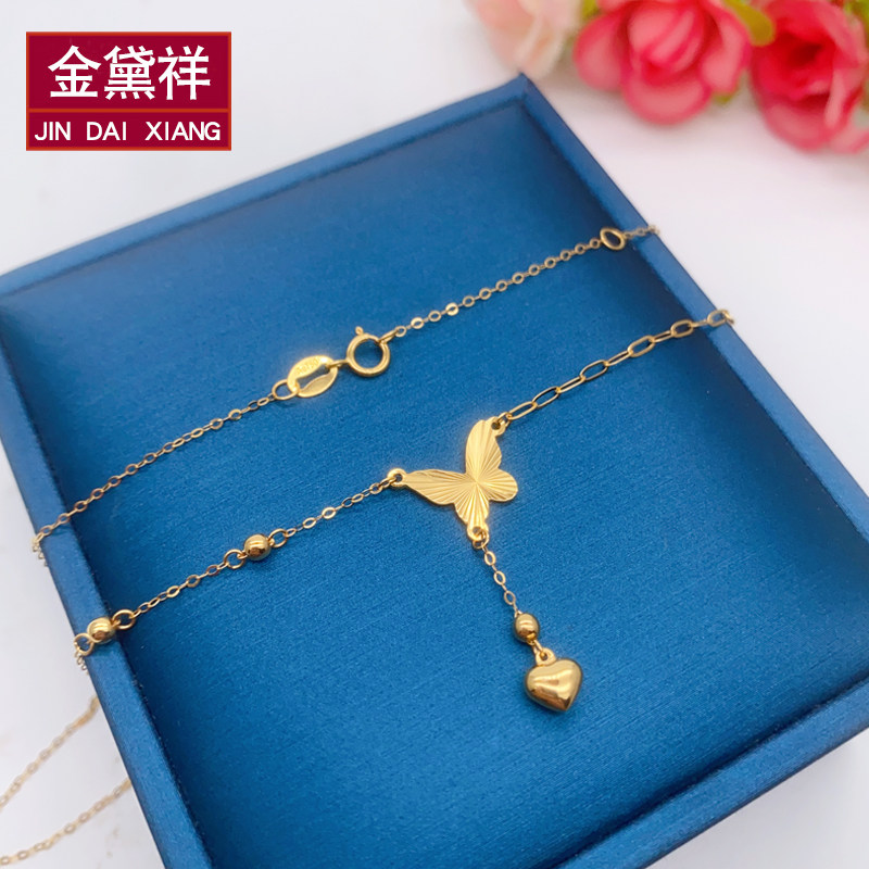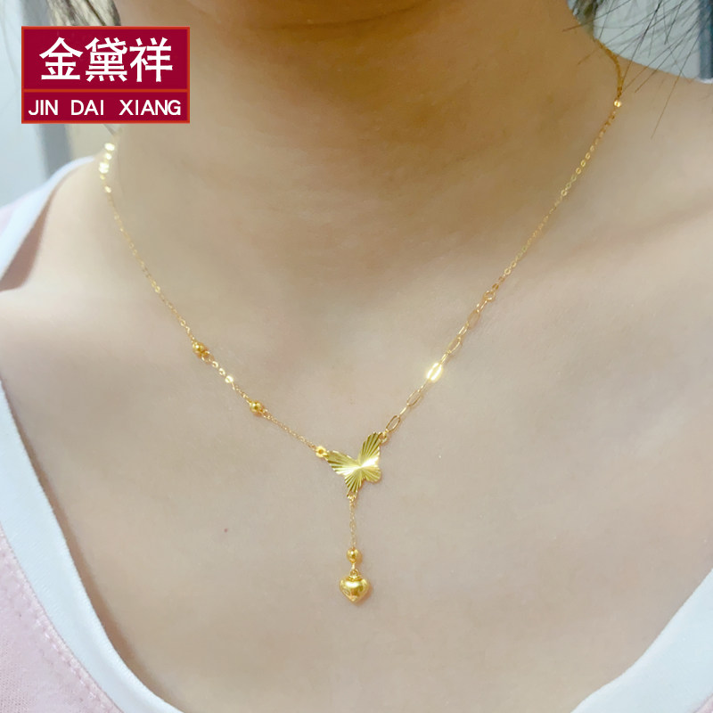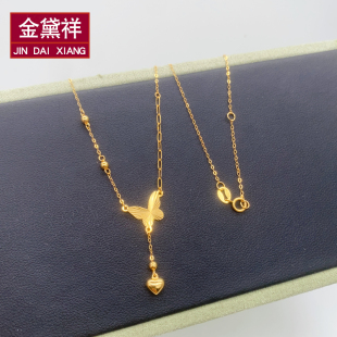18K金套链女黄金玫瑰金蝴蝶项链锁骨链坠正品 Au750爱心链子素金