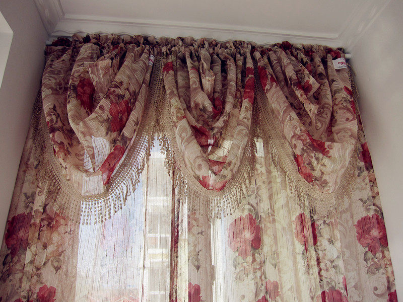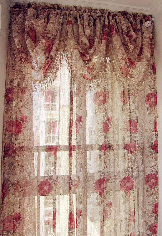 外贸美式 乡村大玫瑰帘头成品窗帘