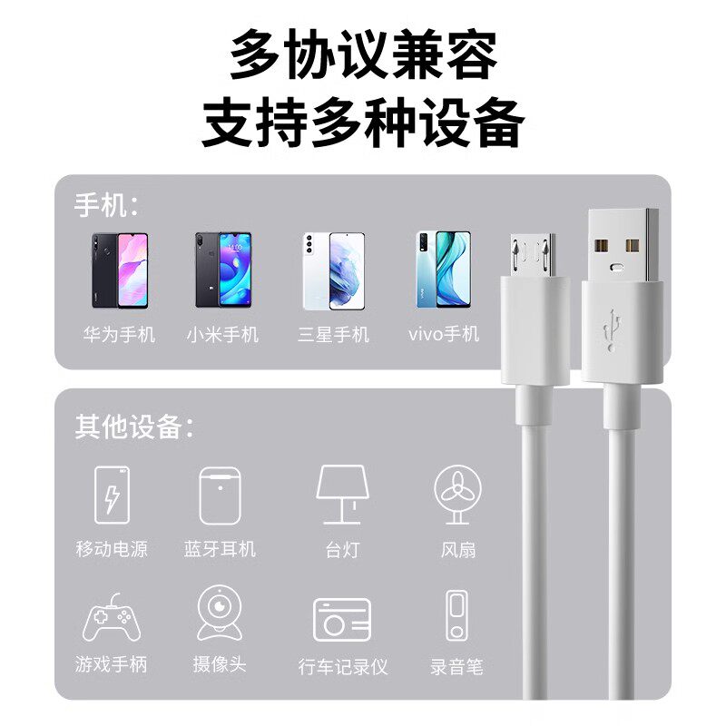 适用荣耀8X数据线10W快充荣耀8XMax安卓手机充电线加长2米数据线华为荣耀8x充电线华为荣耀8xmax充电线闪充线