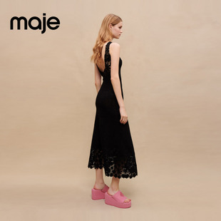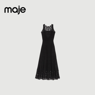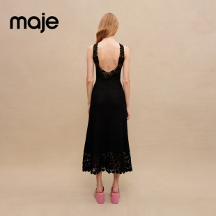 露背无袖 简约优雅黑色刺绣收腰修身 连衣裙长裙 法式 Maje春夏女装