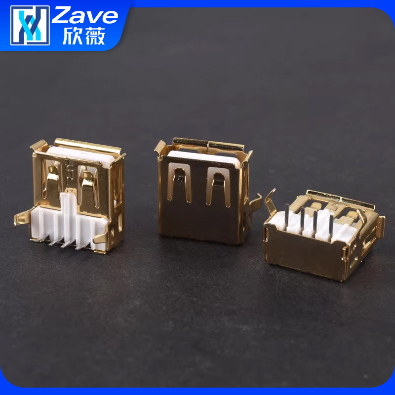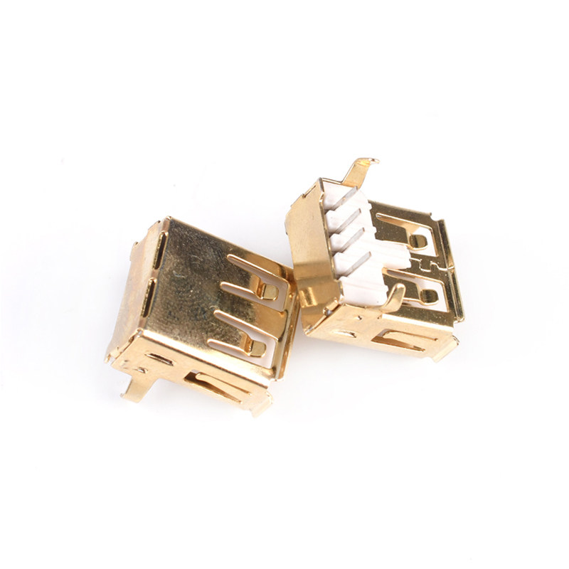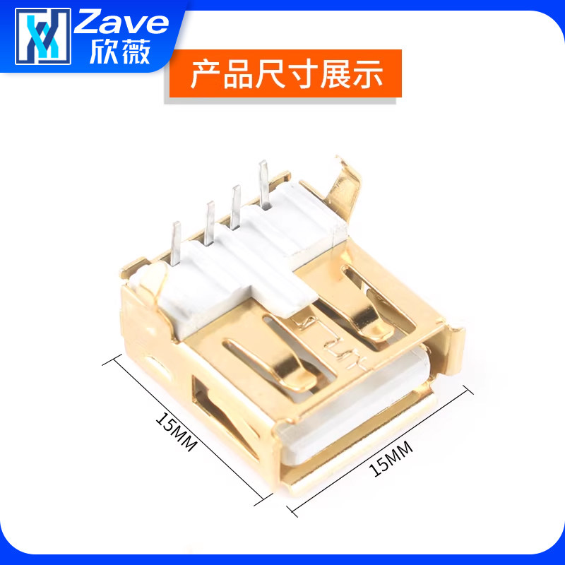 2.0A型插座 弯脚座 母座 90度 插板USB母座卷边 母头A母 镀金USB