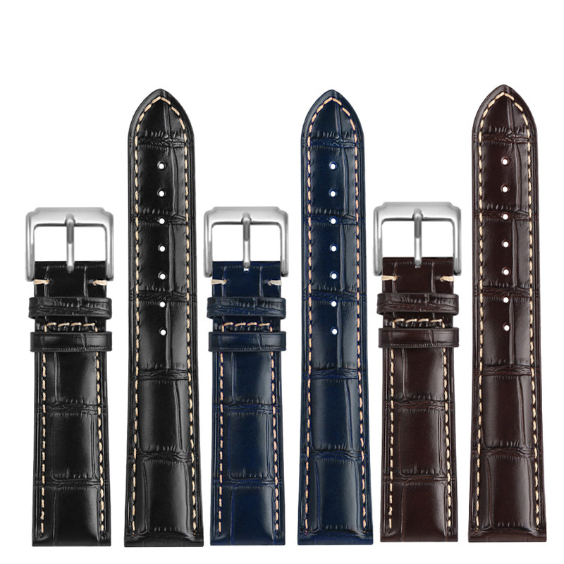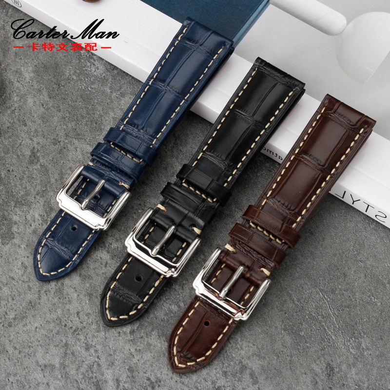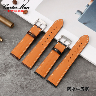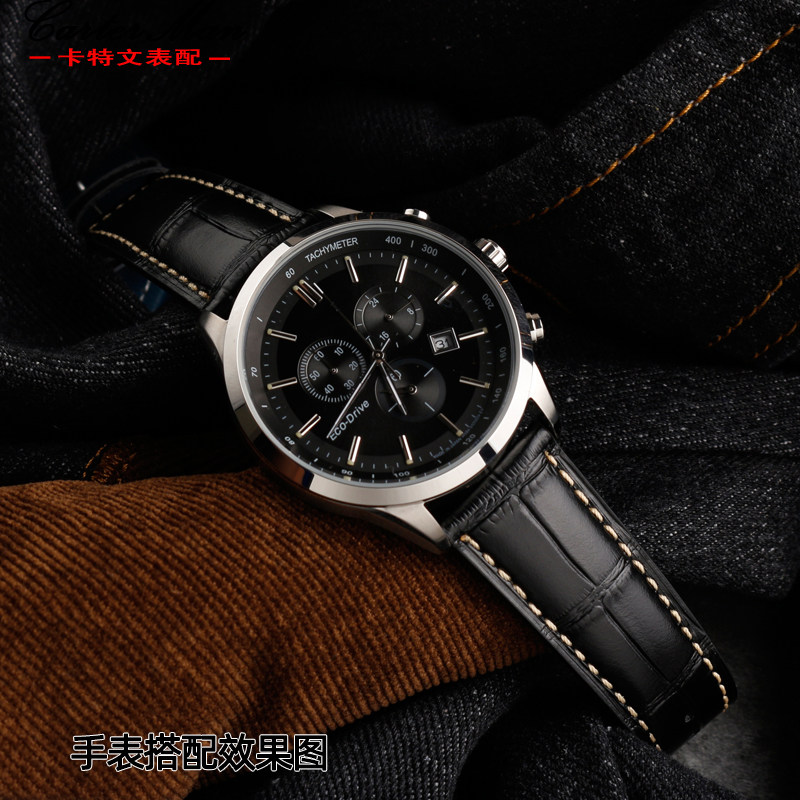 牛皮表带真皮适配西铁城光动能三眼计时AT2140 AT2141系列男21mm