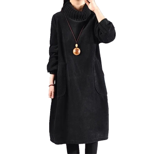 纯欲连衣裙高领长袖 法式 打底裙性感气质大摆短裙 女装 300斤特大码