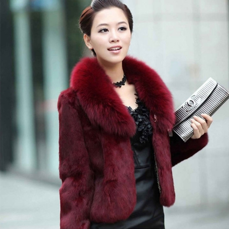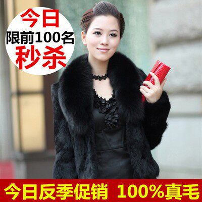 妈妈女装 秋冬季 显瘦 皮毛一体短款 海宁狐狸毛领兔毛皮草外套中长款