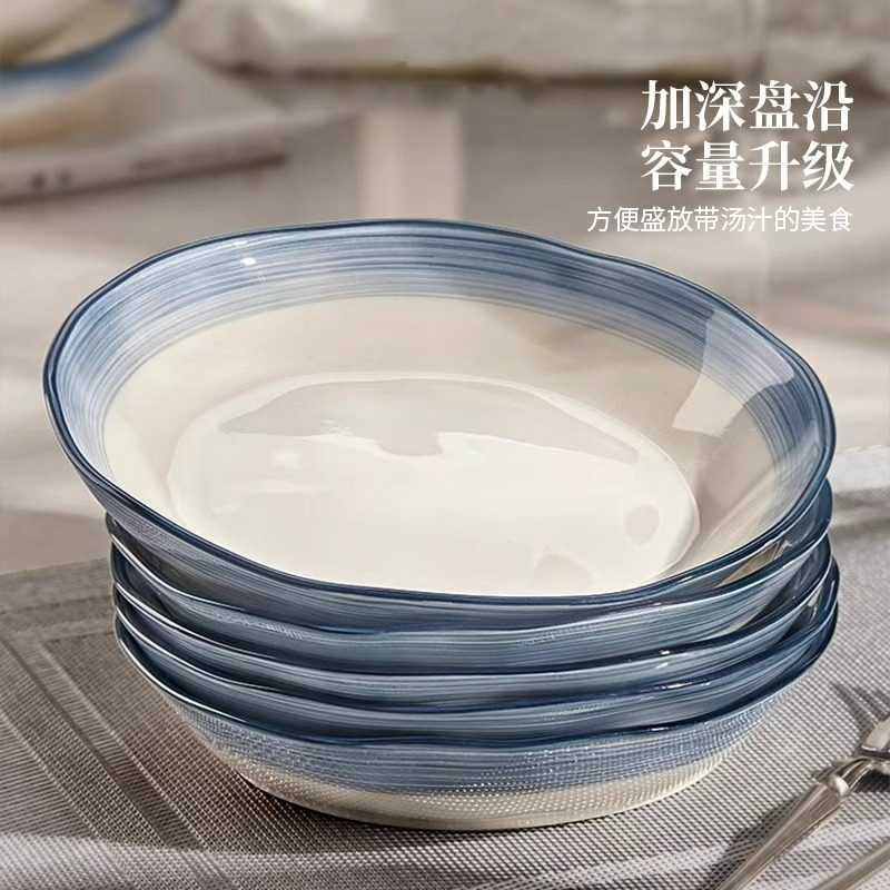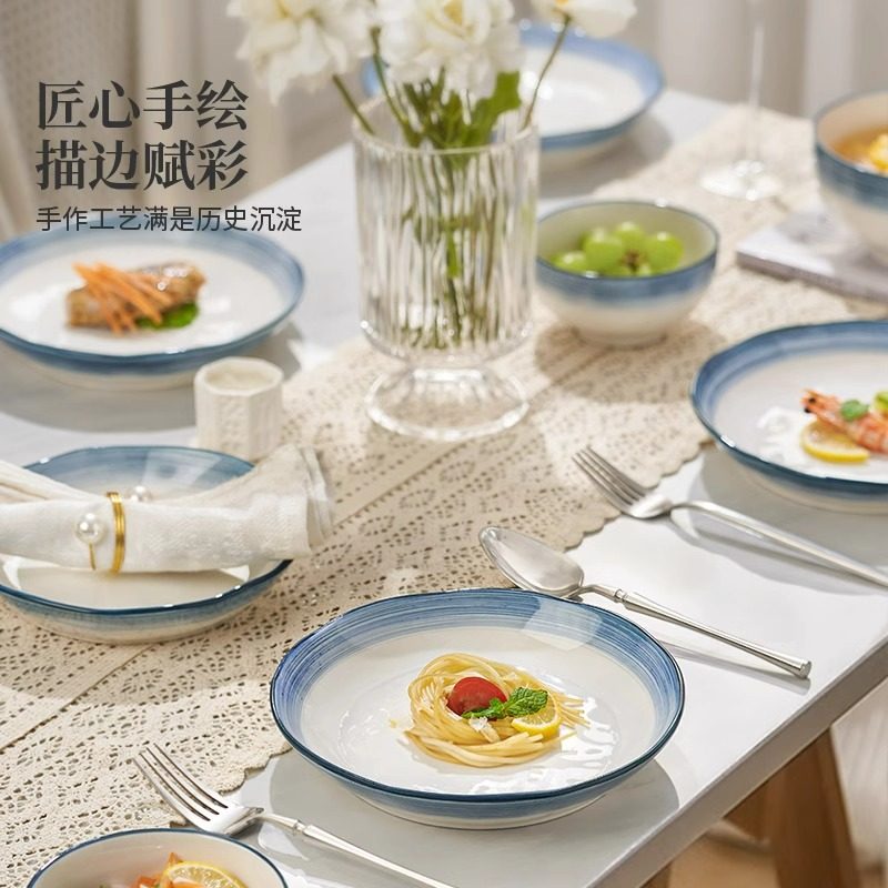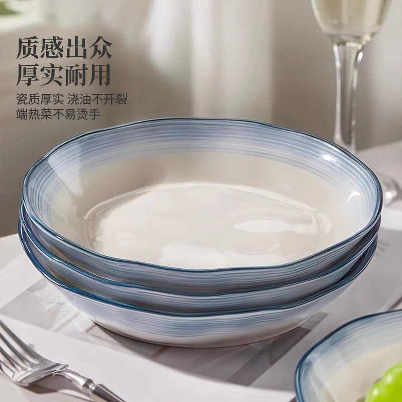 舍里中式 简约陶瓷盘子菜盘家用釉下彩菜碟子餐盘高级感餐具西餐盘