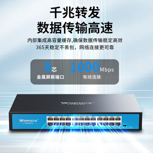 沃浦5口8口16口24口千兆交换机网络分线器监控网络交换机网口转换器家用宿舍集线器家庭网络百兆网线端口拓展