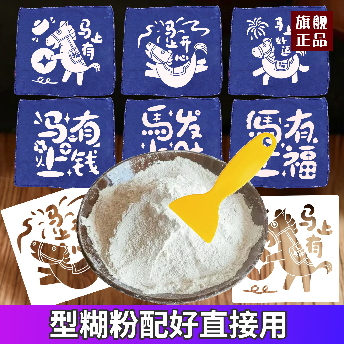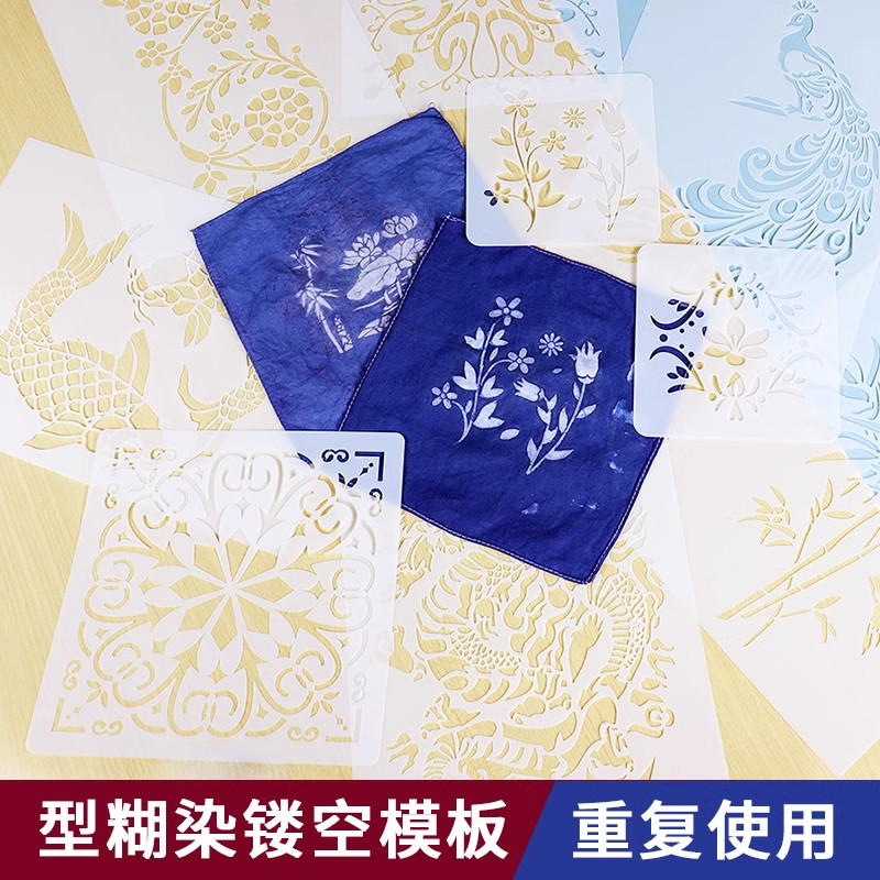 非遗型糊染模板diy材料包工具拓印型糊豆粉蓝染扎染植物印染蜡染
