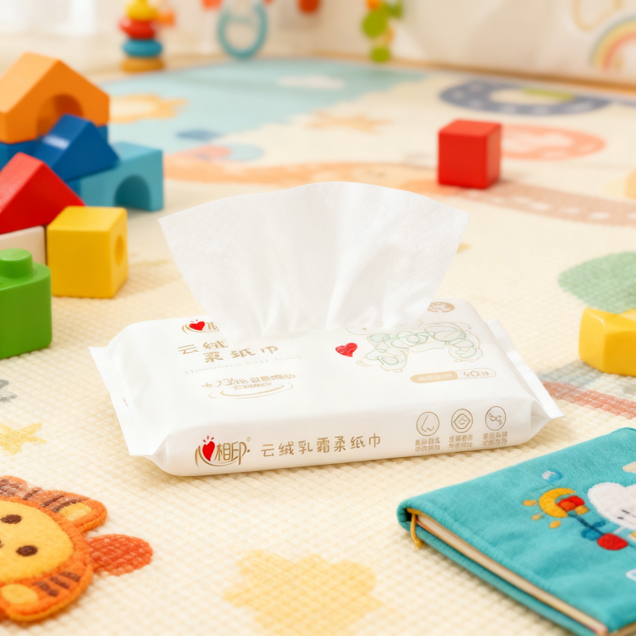 心相印宝宝用纸柔纸巾保湿 婴儿云柔巾 纸小学生抽纸上学40抽便携装
