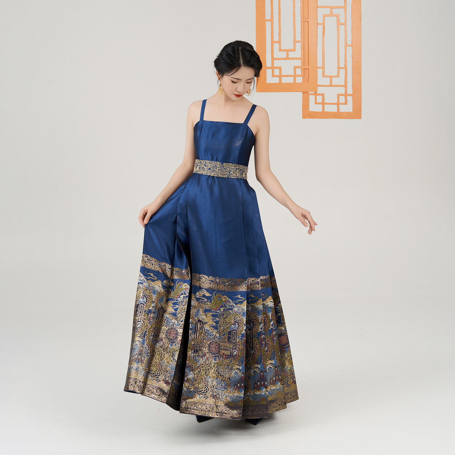 妆花长褙子马面连衣裙织金腰封 华彩东方秀款 现货织造司 福临所愿