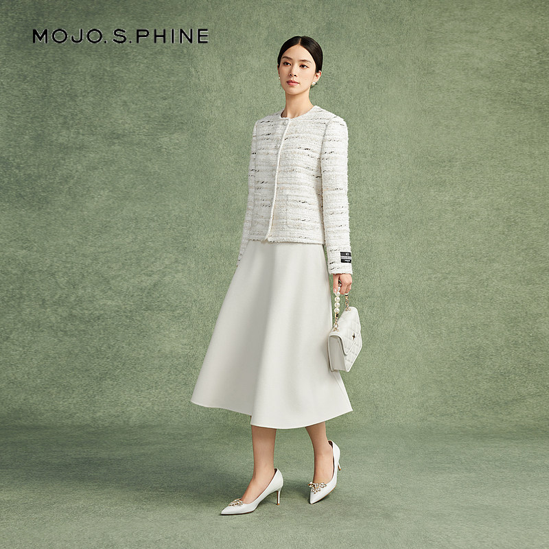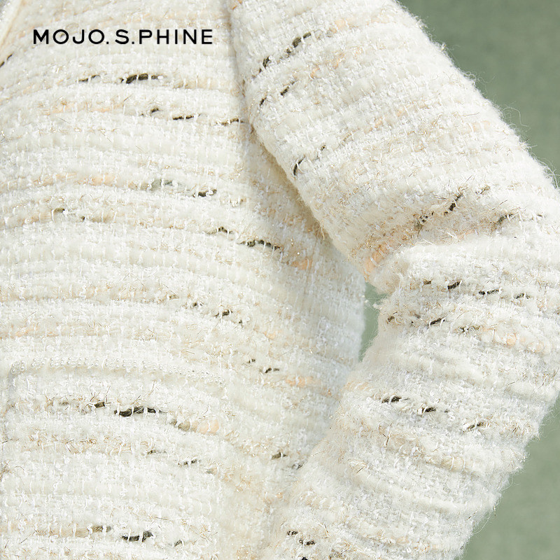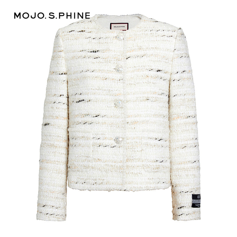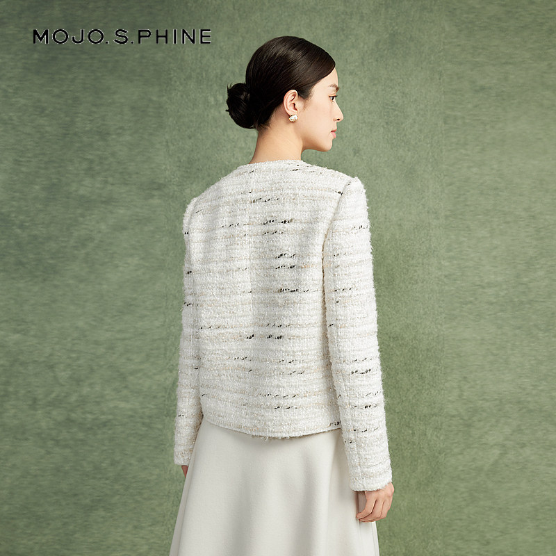 朗姿集团MOJO莫佐法国粗花呢小香风短外套2024年秋冬新款 一字肩肌