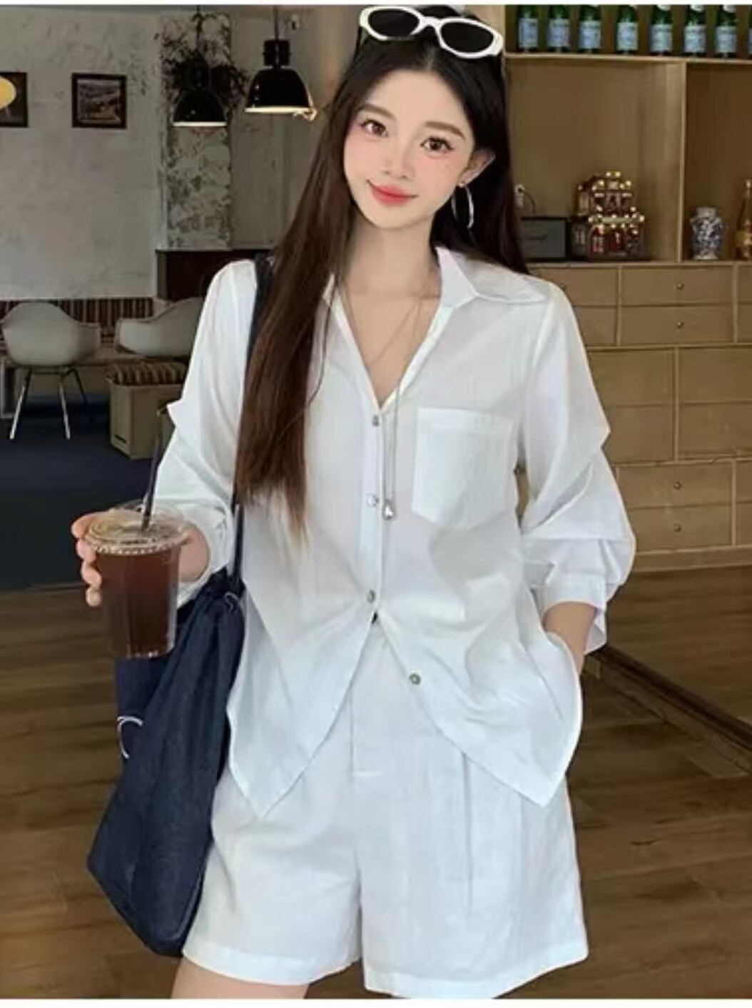衬衫 贵妃专属2026年春夏款 短款 洋气翻领开扣七分袖 上衣8221 法式