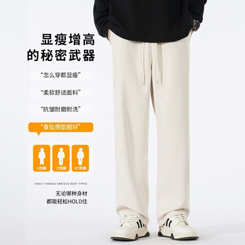 裤 垂坠感超长版 子男190高个子运动裤 加长款 白色休闲裤 直筒裤 秋季