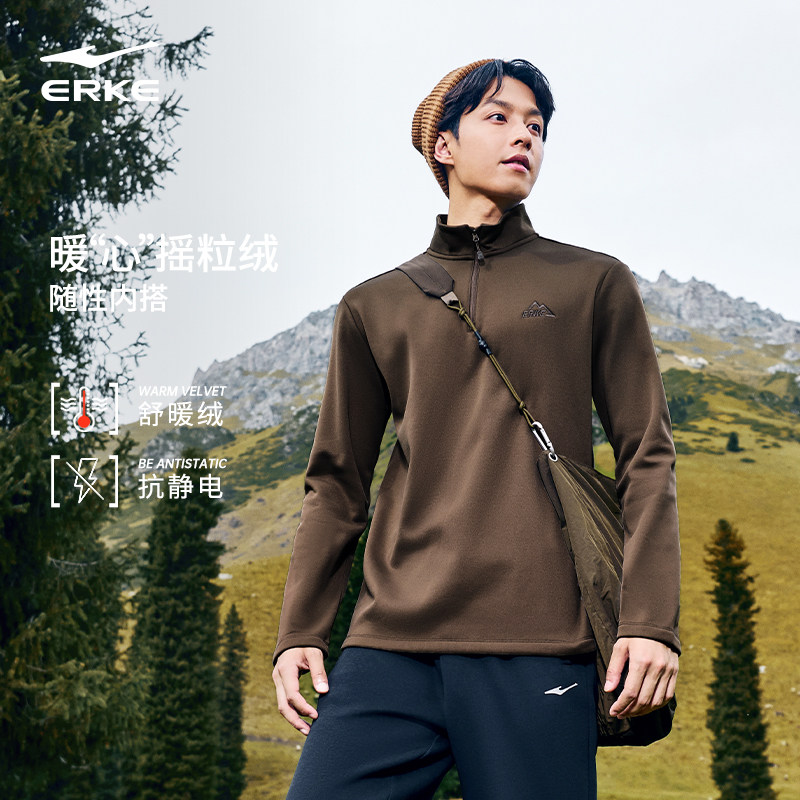宽松针织运动上衣简约男装 加绒圆领套头衫 卫衣男冬季 安踏休闲长袖
