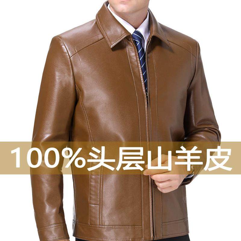 海宁真皮软皮衣男秋冬加绒加厚皮夹克男士 羊皮外套暖 中老年爸爸装