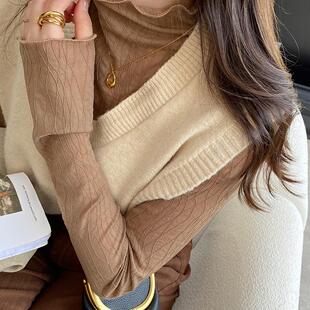 薄款 秋季 白色小香风内搭半高领网纱黑色上衣 女2024新款 蕾丝打底衫