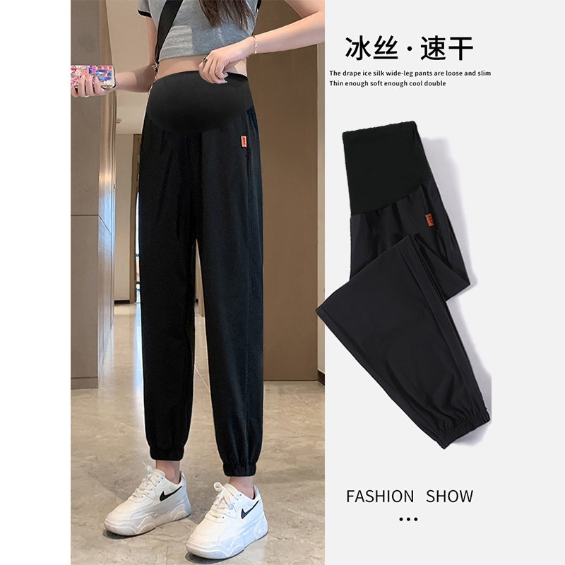 孕妇九分裤 300斤宽松阔腿W外穿束脚哈伦裤 夏季 冰丝200 薄款 超大码