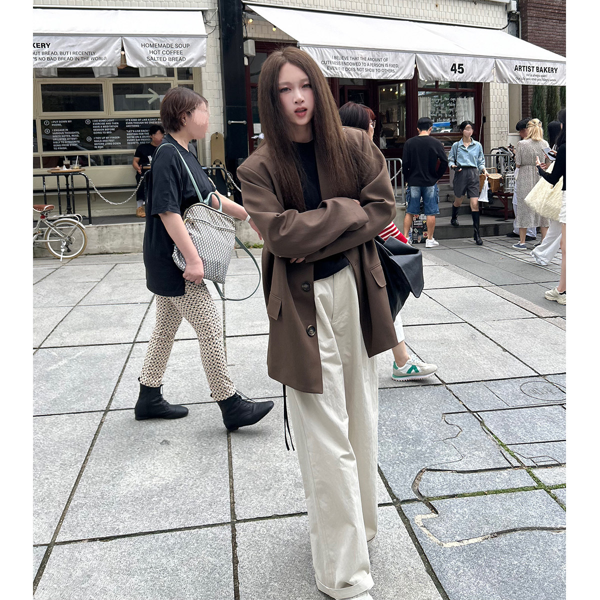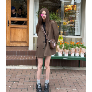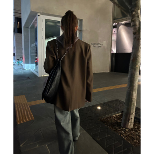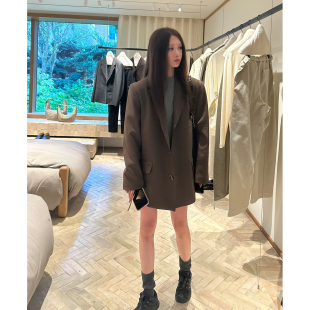 深棕绿色阔肩西装 Avocadong 外套女休闲百搭短外套 5折特价