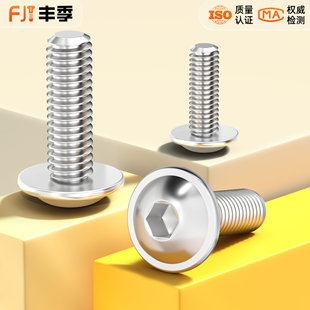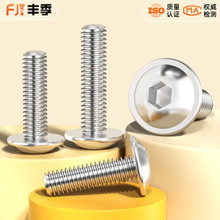 304不锈钢圆头带垫内六角螺丝螺钉螺栓盘头半圆头M3M4M5M6M8M10mm