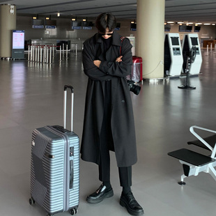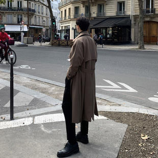 英伦风衣 宽松帅气双排扣外套男士 垂坠高级感风衣男生长款 过膝韩版