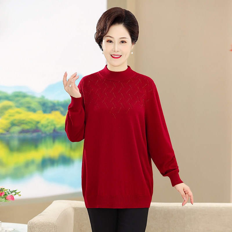 200斤中老年针织打底衫 奶奶半高领毛衣秋冬 加肥加大胖妈妈羊毛衫