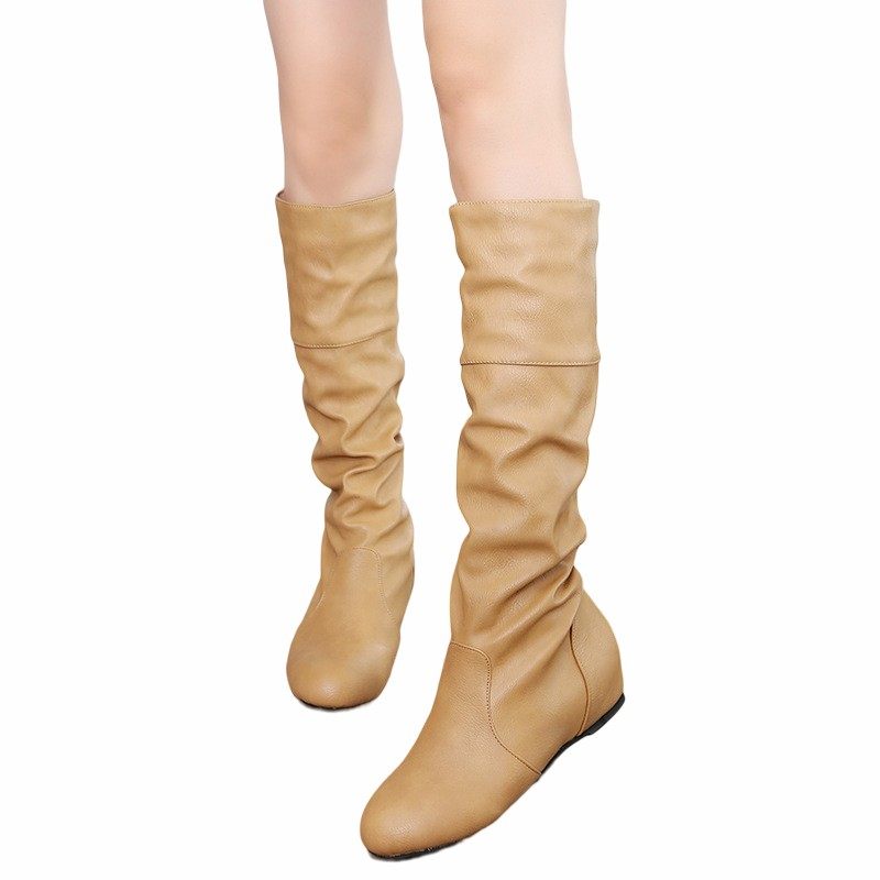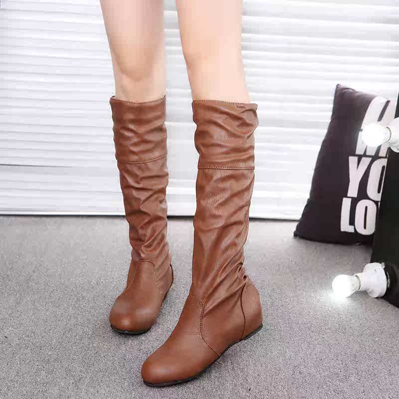 马丁靴长筒靴女2025新款 秋冬加绒厚底女靴子高筒骑士靴小个子长靴