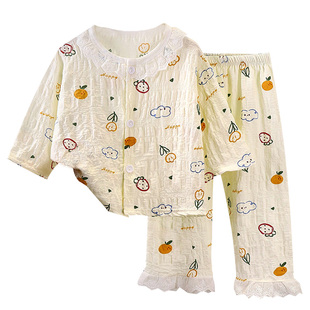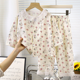 春秋 空调服中大童女宝宝家居服套装 儿童夏季 睡衣轻薄透气女童长袖