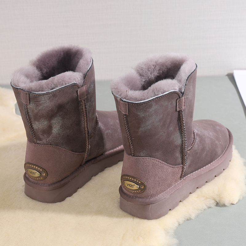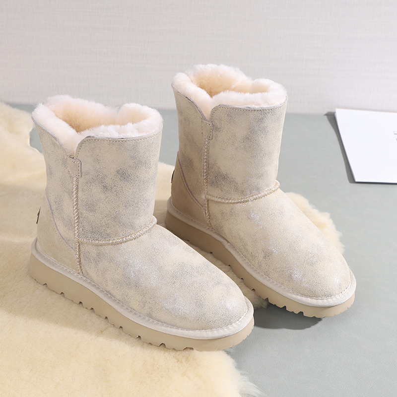 雪地靴女中筒防水皮毛一体东北牛皮保暖加绒加厚羊毛棉鞋 2025新款