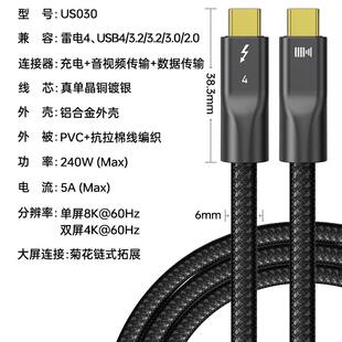 开博尔真单晶铜镀银雷电4全功能type c同轴数据线双头PD240W快充8K60hz高清线适用苹果macbook电脑连接线